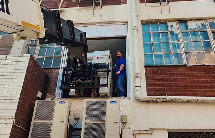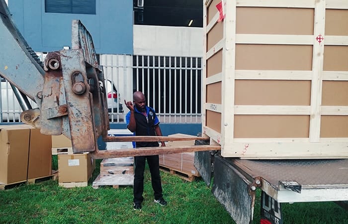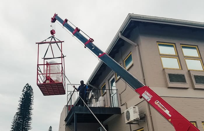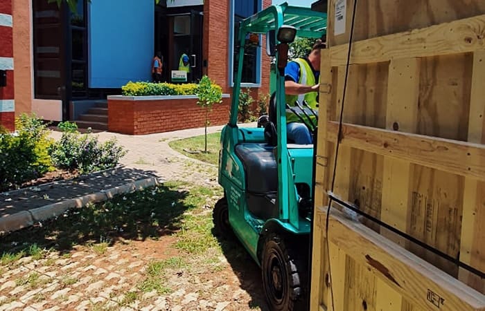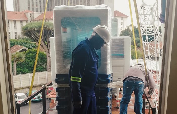 - Crating and uncrating of equipment with coordinated rigging and crane vehicle services.